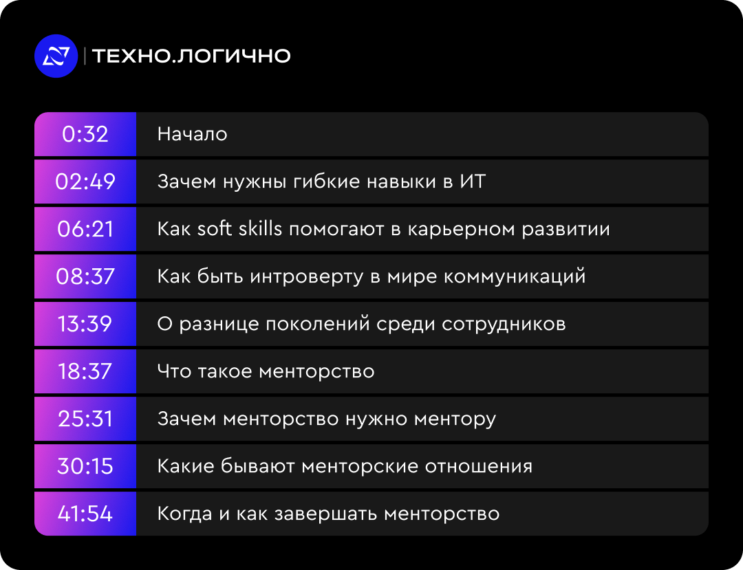 Какие гибкие навыки помогают построить успешную карьеру в ИТ? Всем ли нужен навык публичных выступлений и как создавать команды, учитывая разницу поколений? Узнайте в новом выпуске «Техно.Логично» с Андреем Кругловым и Алексеем Обровцом.