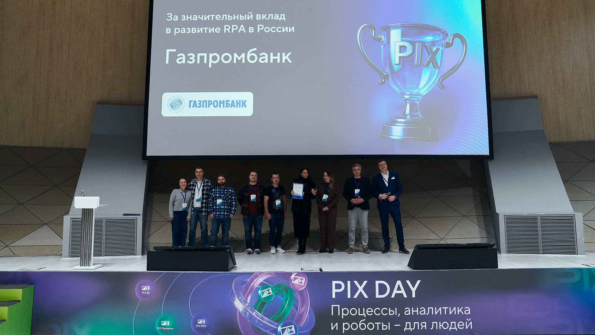 Конференцию завершила церемония PIX Awards 2025 — ежегодной премии, отмечающей лучшие проекты в сферах роботизации, аналитики и управления процессами. Награды получили компании, которые продемонстрировали реальные результаты цифровой трансформации: повышение эффективности, прозрачности и качества управленческих решений. Газпромбанк стал номинантом премии за значительный вклад в развитие роботизации в России.О конференции PIX Day