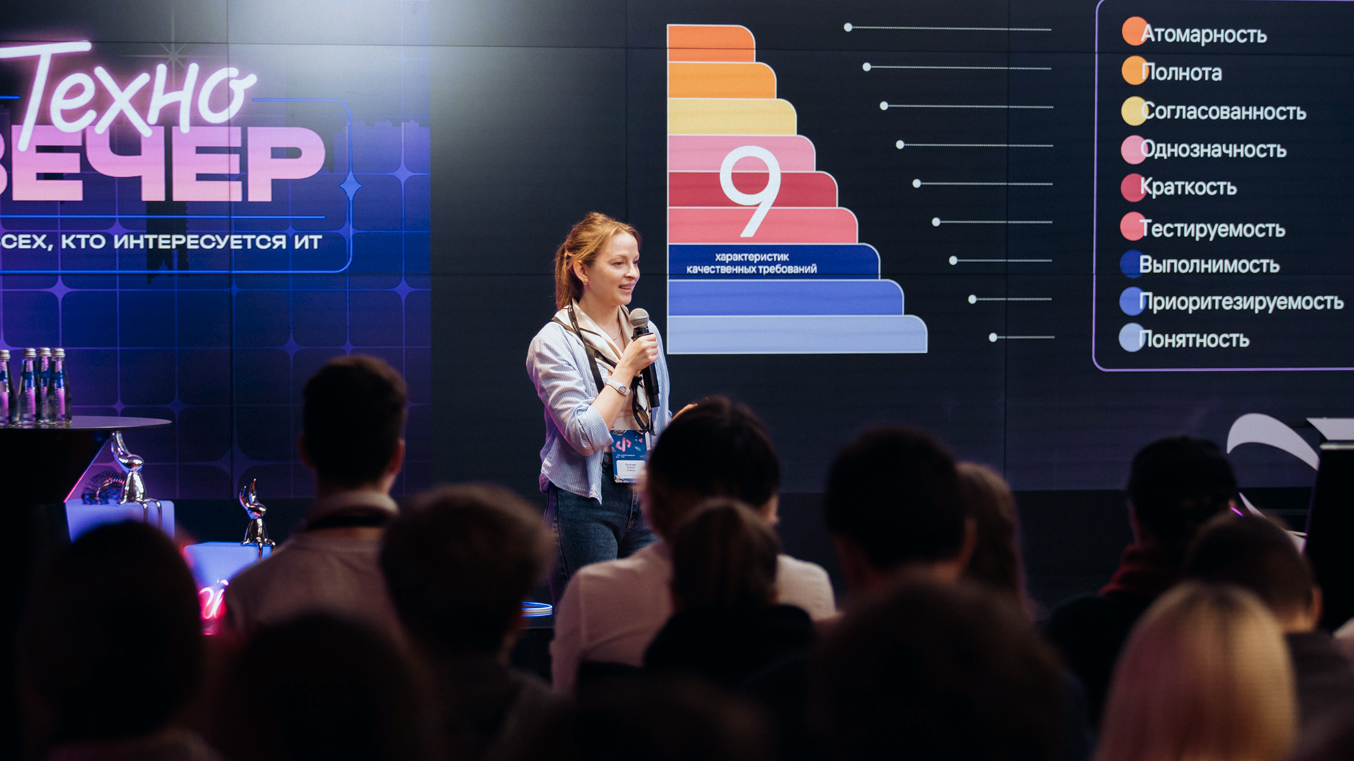 Ксения разобрала девять принципов качественных требований: атомарность, полнота, согласованность, однозначность и другие — с примерами из практики. Вот пример про важность однозначности: написали «открыть поля», но один разработчик понял «сделать видимыми», другой — «разблокировать для редактирования». Одно неточное слово — и результат непредсказуем.